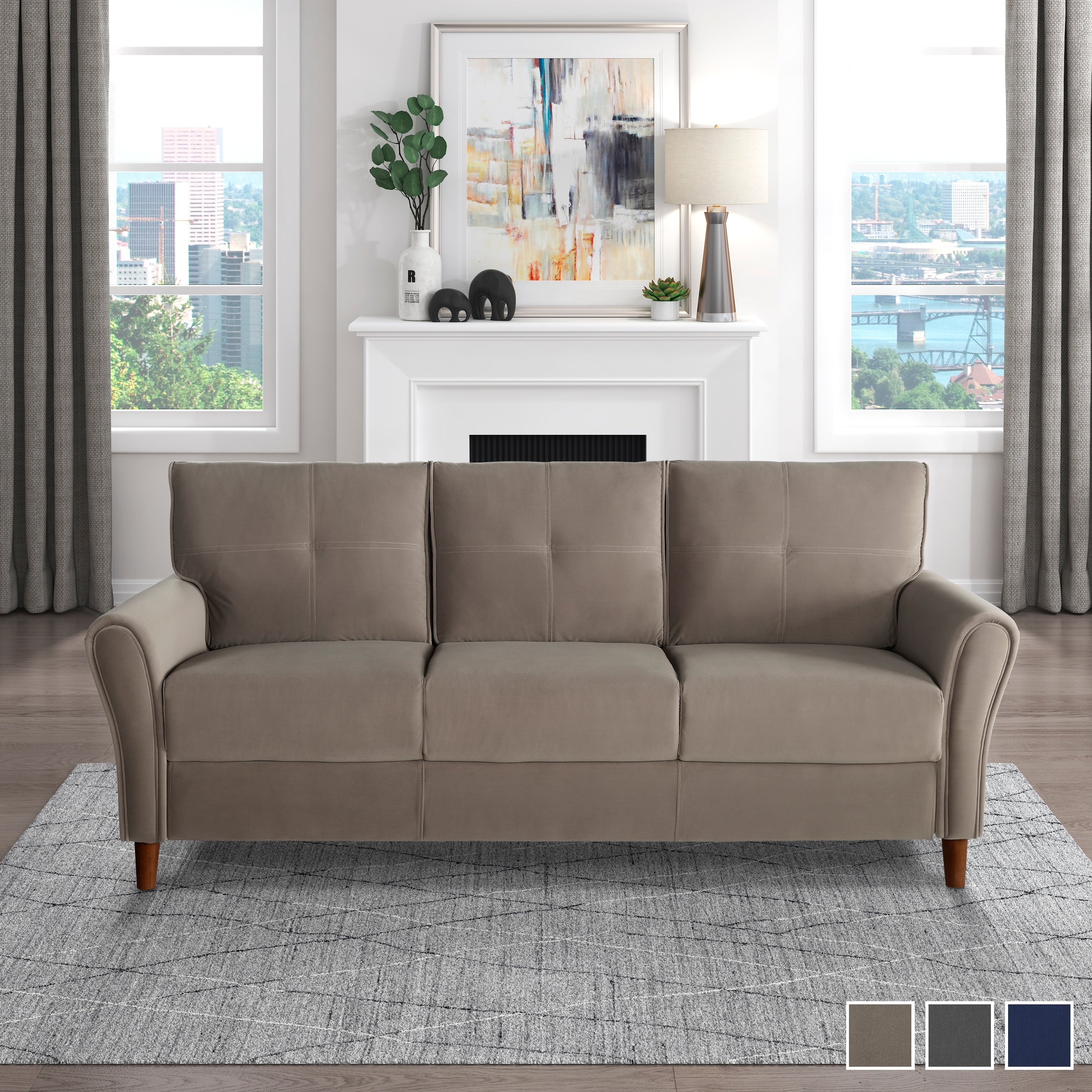 Introducing the Avlona Tufted Velvet Sofa - a charming addition to your living space. The walnut-finished wooden frame complements the flared arms and tufted detailing, while the three velvet fabric color options make it easy to match your existing decor. The transitional style and removable cushions make for a comfortable and stylish seating experience.