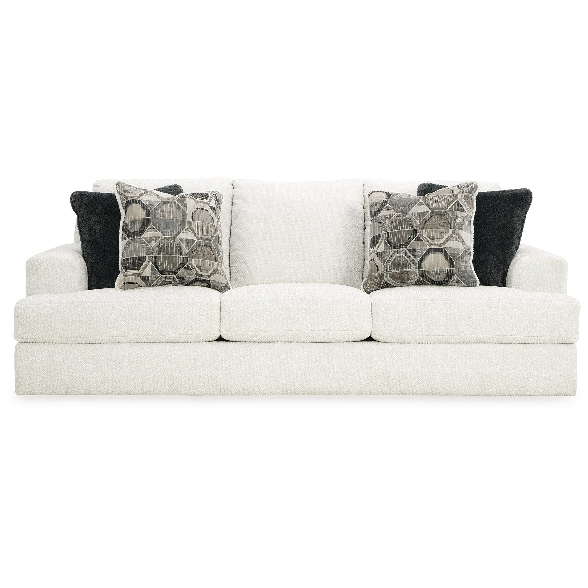 Craving casual refinement? This sofa has you covered. Its decidedly contemporary frame cradles sizable cushions in an ultra-soft neutral hue, lightening the mood in your living room with simple style and everyday comfort. Solid and geometric accent pillows perfect the chic-meets-cozy vibe.